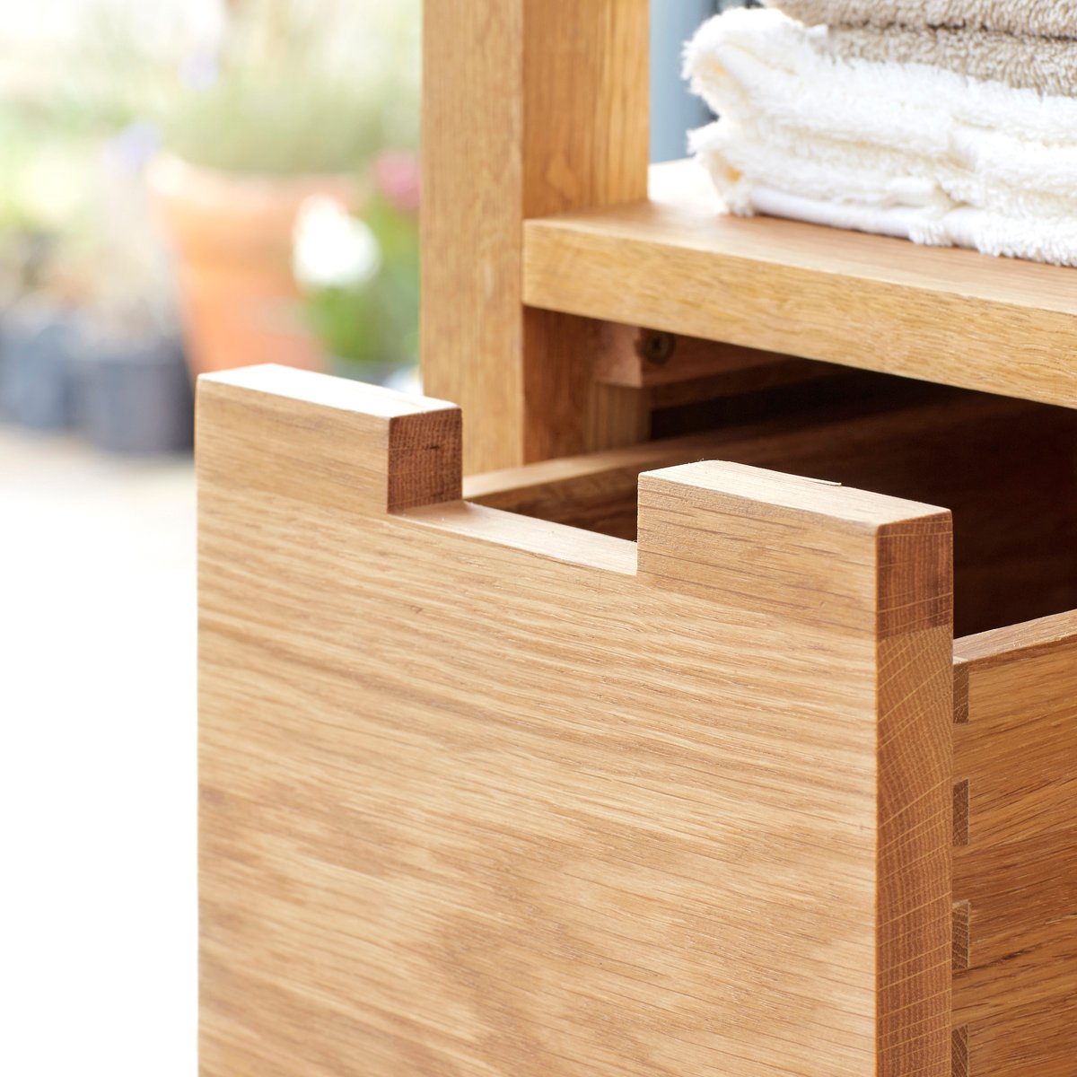 Banyo Rafı, doğal tik ağacı kaplamalı olarak el işçiliği ile imal edilir. Mat cila uygulaması yapılır. 2 çekmecelidir. Çekmecelerde tam açılım tandem ray kullanılır.