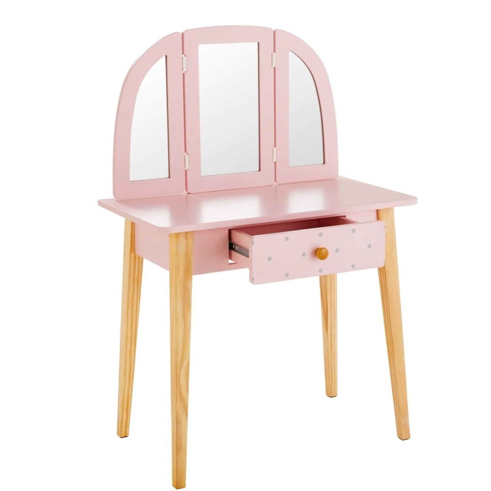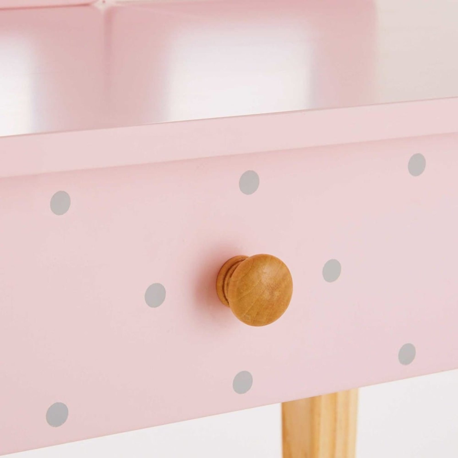 Çocuk odası Aynalı Dresuar, masif çam ağacı ve mdf kullanılarak imal edilir. Su bazlı boya ve naturel cila uygulaması yapılır.