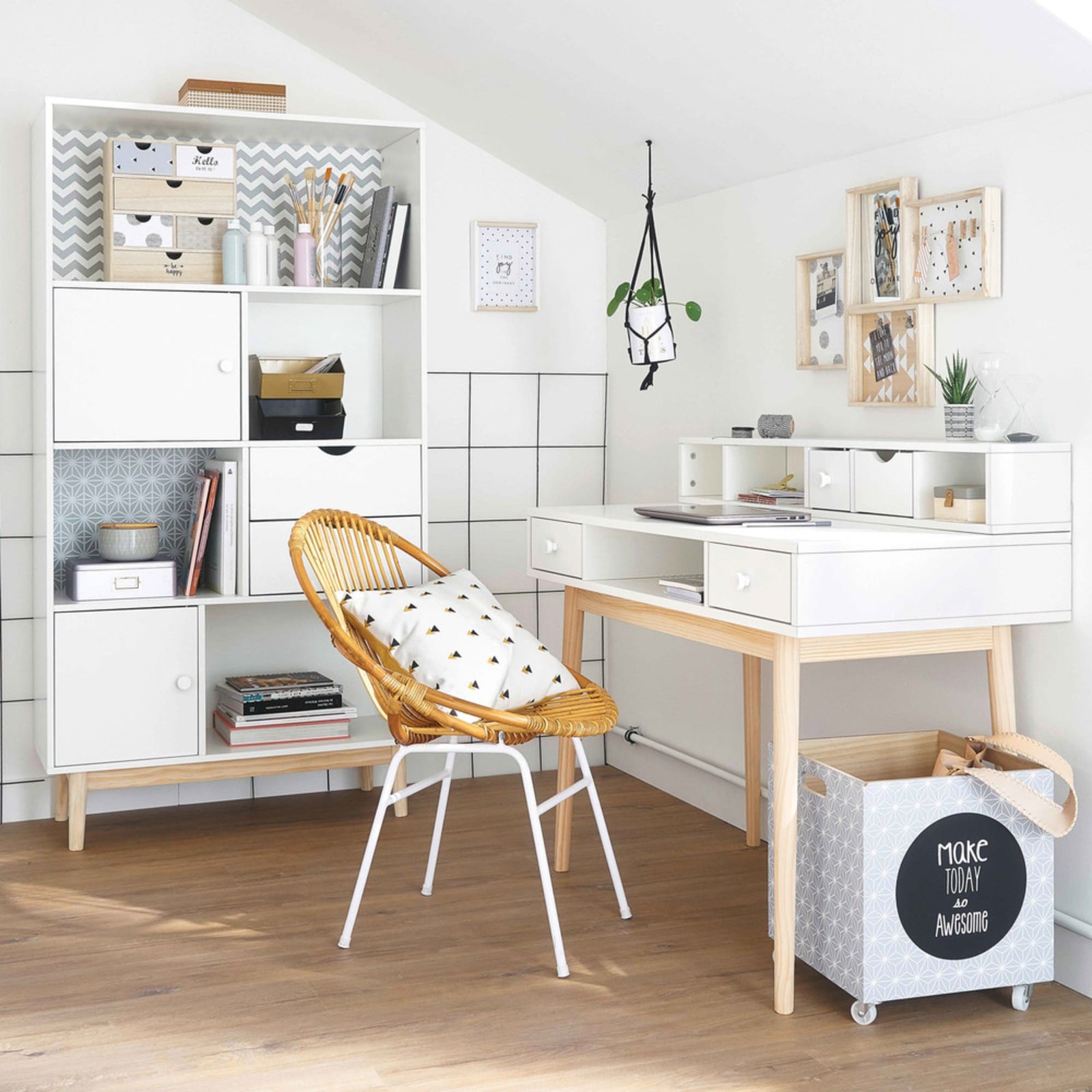 Çocuk çalışma masası ve desk, beyaz kısımlar mat melamin kaplı MDF yonga plakadan, ahşap kısımlar doğal, masif köknar ağacından imal edilir.