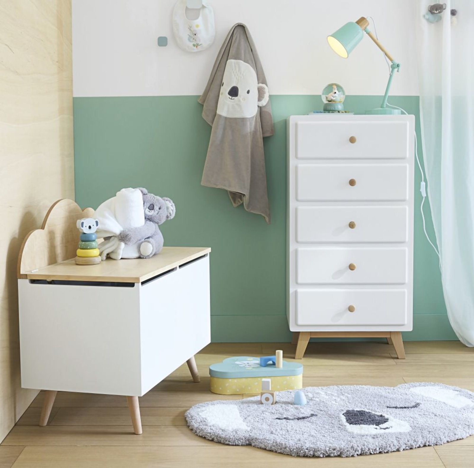 Çocuk odası Şifonyer & Çekmeceli Dolap, ahşap kısımları tamamen doğal, masif köknar ağacından imal edilir. Su bazlı boya ve naturel cila uygulaması yapılır. Köknar ağacının sağlıklı ve dayanıklı yapısından dolayı yıllarca sorunsuzca kullanılabilir.
