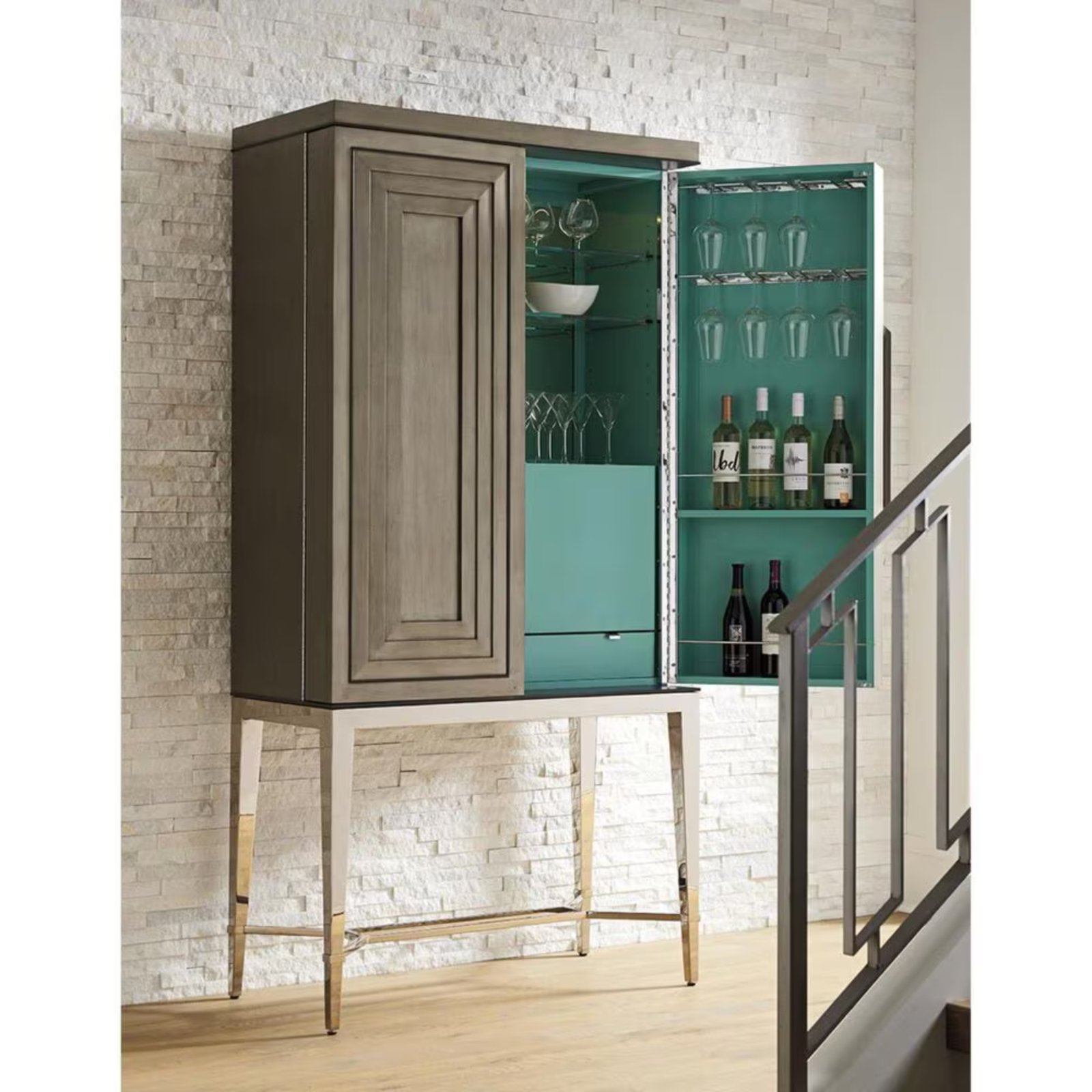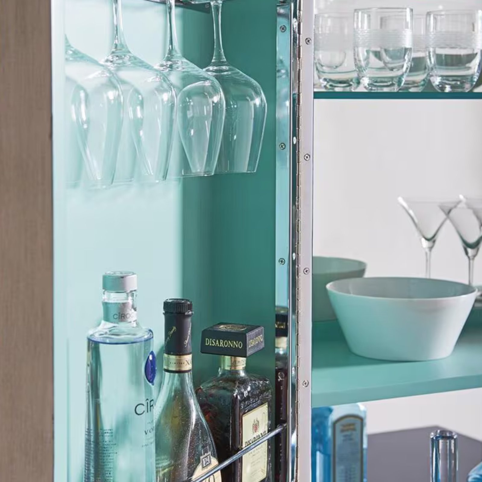 Halo Bar Dolabı’nın iç tasarımı, işlevselliği ve pratikliği ön planda tutarak, bardaklarınızı, şişelerinizi ve diğer bar malzemelerinizi düzenli bir şekilde yerleştirmenize olanak tanır. Geniş rafları ve bardak asma bölmeleri, bar dolabını sadece bir saklama alanı olmaktan çıkararak, içeceklerinizi ve bardaklarınızı şık bir şekilde sergilemenize olanak sağlar. Aynı zamanda iç kısmındaki canlı renk, dolabın kapakları açıldığında mekana enerjik ve davetkar bir atmosfer katar.