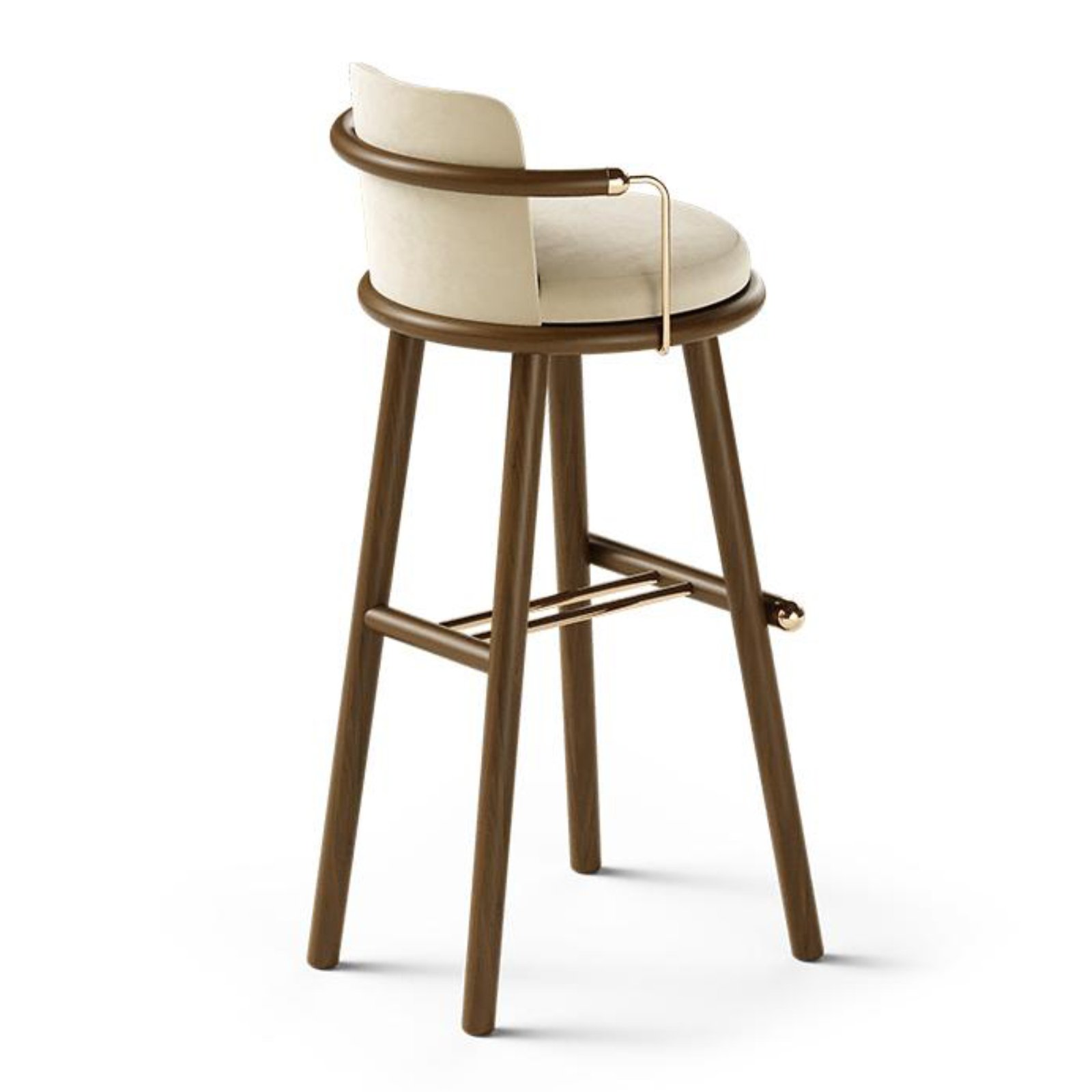 Bonno Bar Taburesi, modern ve klasik detayları bir araya getiren zarif bir tasarım sunuyor. Masif ahşap ayaklar, tabureye doğal bir sağlamlık ve zarafet kazandırırken, pirinç renkli metal detaylar lüks bir dokunuş ekliyor. Bu şık tabure, her türlü iç mekanda sofistike bir atmosfer yaratmak isteyenler için mükemmel bir seçenek.